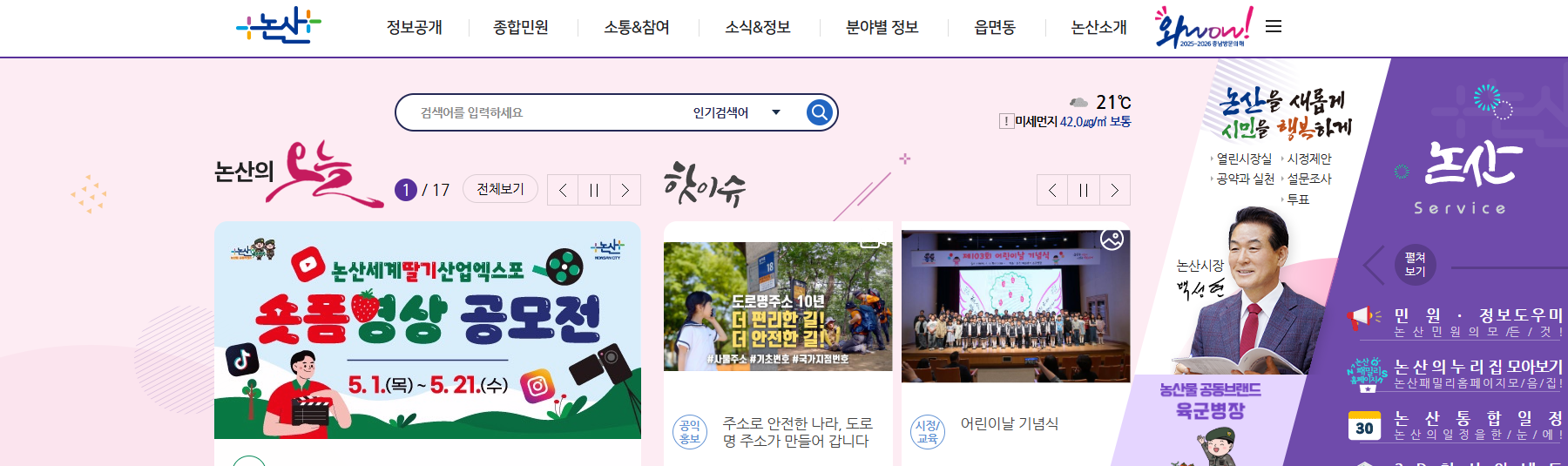 논산시청 홈페이지는 단순한 행정 정보 제공을 넘어 시민과의 소통과 참여를 강화하는 플랫폼으로 자리매김하고 있습니다. 특히 최근에는 지역 발전과 관련된 다양한 정보와 서비스를 제공하며 주목받고 있습니다. 이번 글에서는 논산시청 홈페이지의 주요 기능과 시민들이 관심을 가질 만한 내용을 중심으로 살펴보겠습니다.
