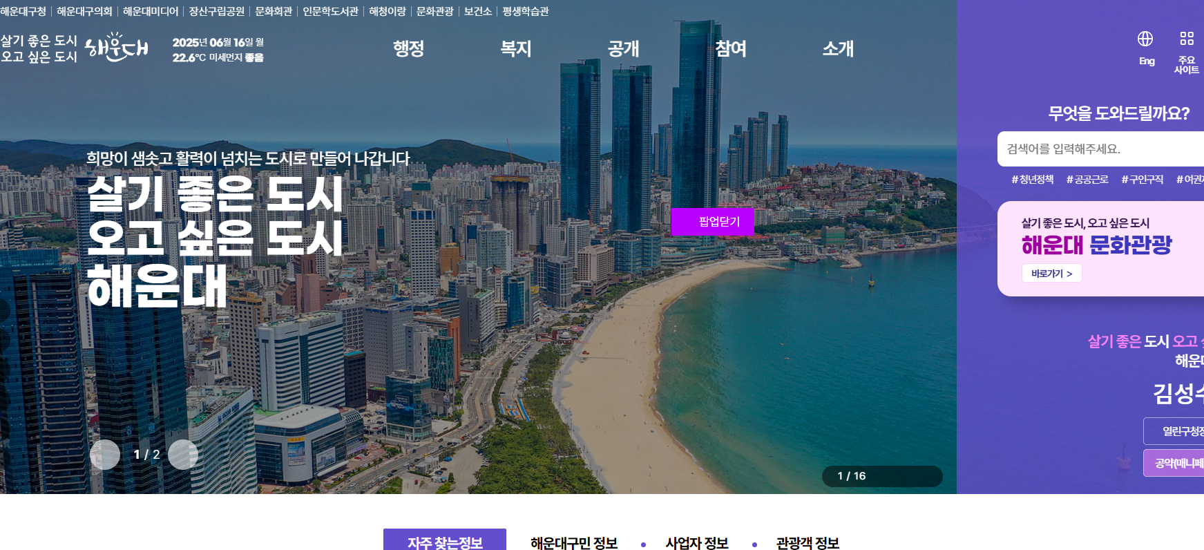 ️해운대구청 홈페이지의 주요 기능