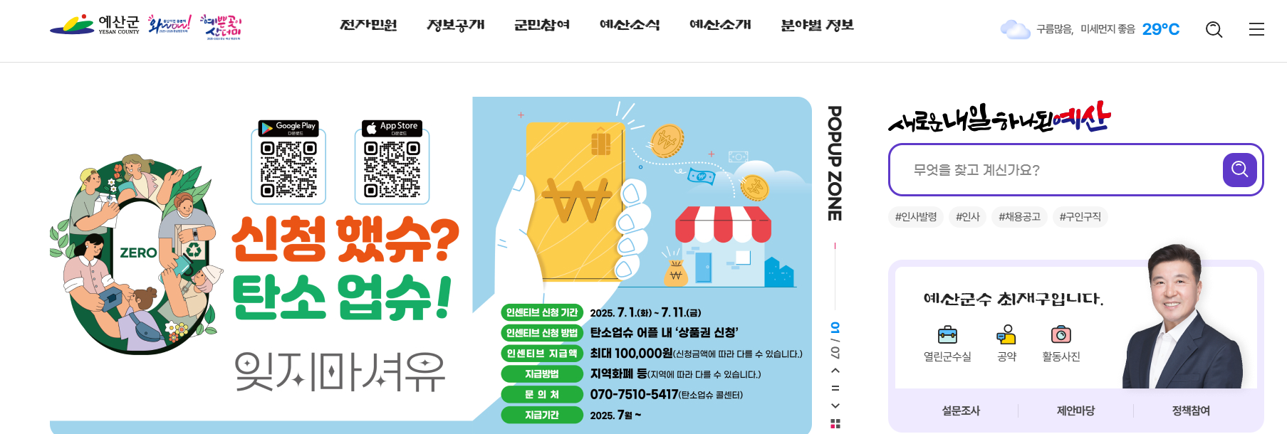 예산군청 홈페이지는 단순한 행정 사이트를 넘어