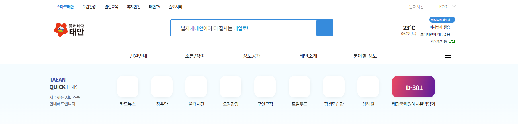 태안군청 홈페이지는 단순한 행정 사이트를 넘어