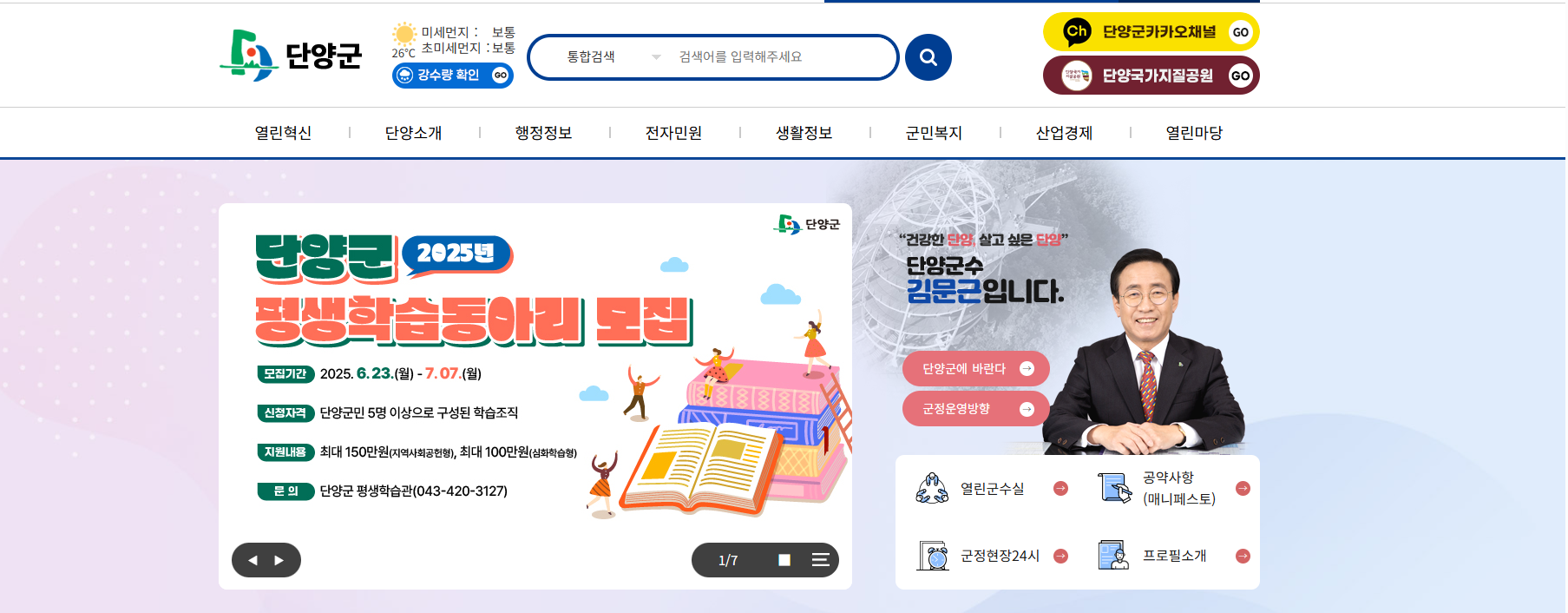 단양군청 홈페이지는 단순한 행정 사이트를 넘어