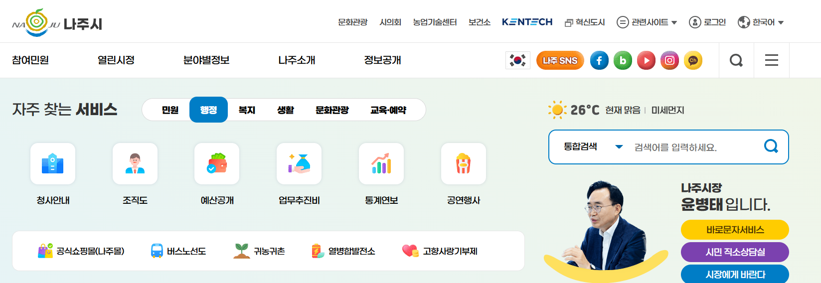 - 생활 정보: 상하수도, 혼인출생신고, 축제 및 문화행사