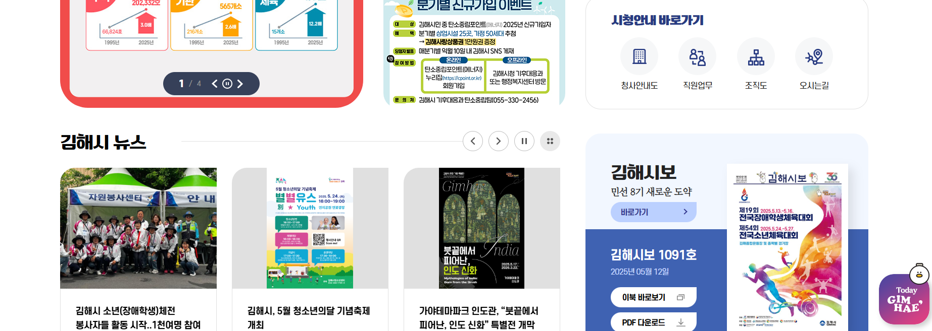 ️김해시청 홈페이지의 주요 기능