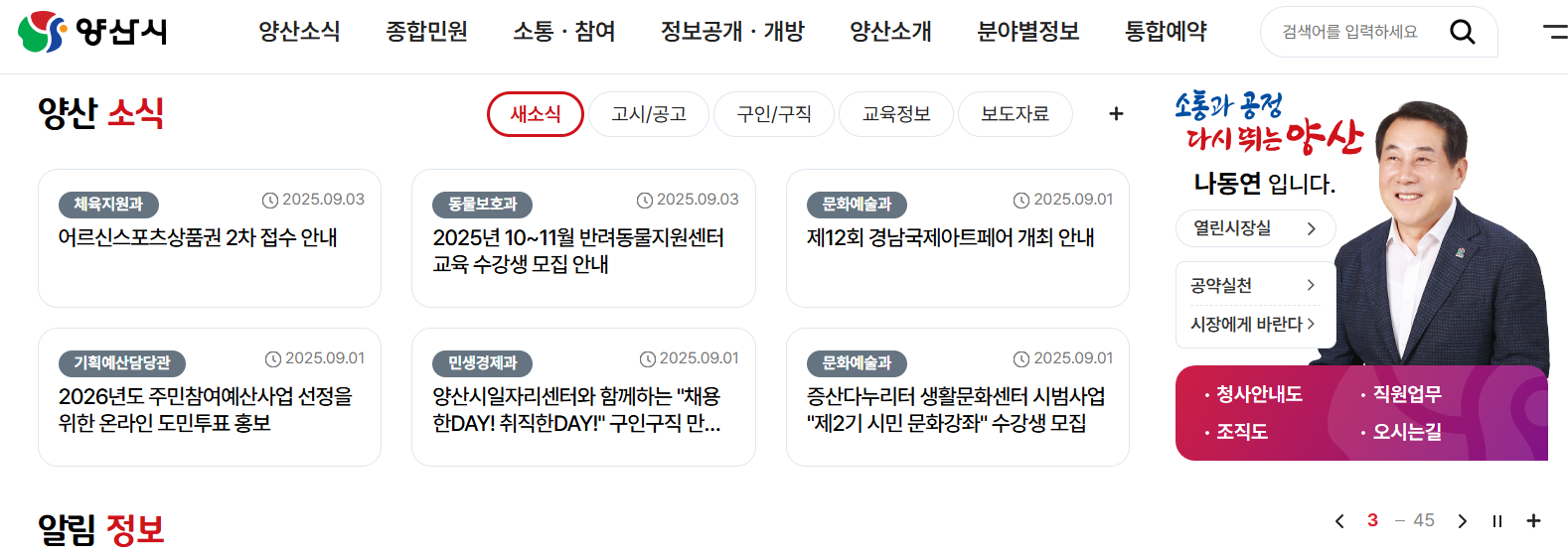 - 양산시청 홈페이지(www.yangsan.go.kr) 접속