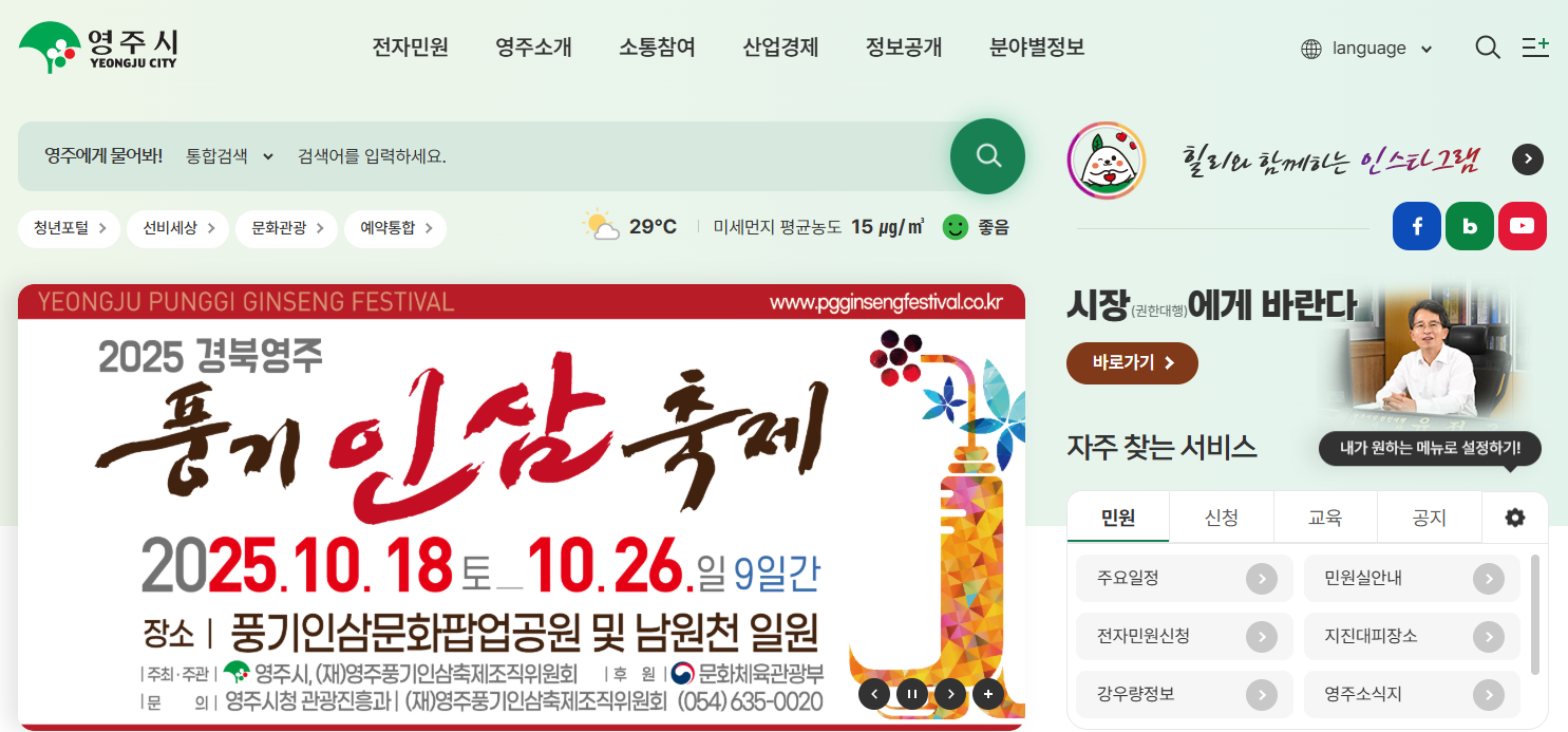 영주시는 전자민원 서비스를 제공하여 온라인으로도 각종 민원 신청 및 처리 상태 확인이 가능합니다. 이를 통해 시간과 장소에 구애받지 않고 민원 업무를 처리할 수 있습니다.