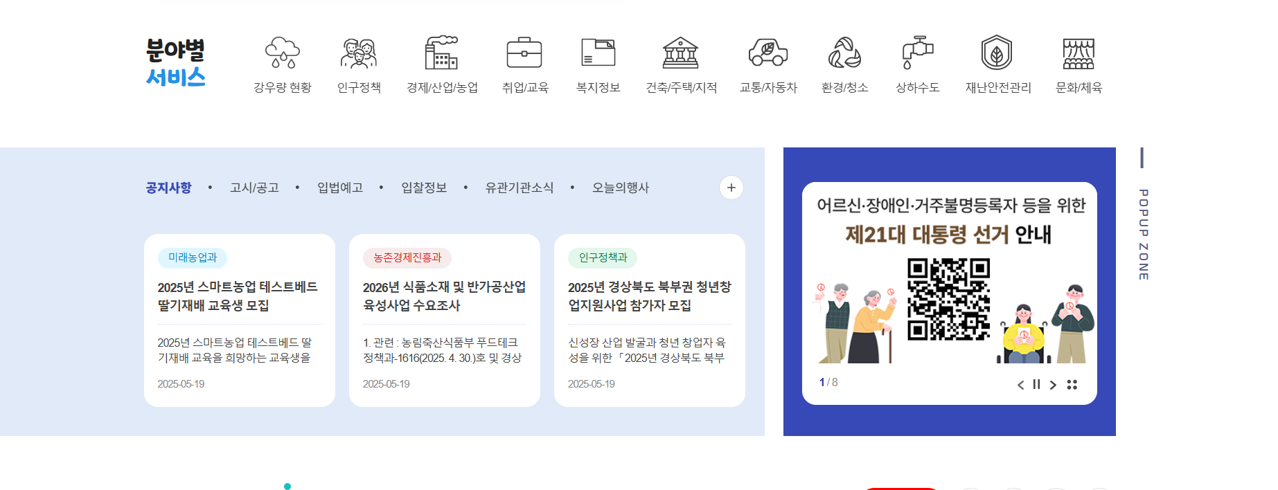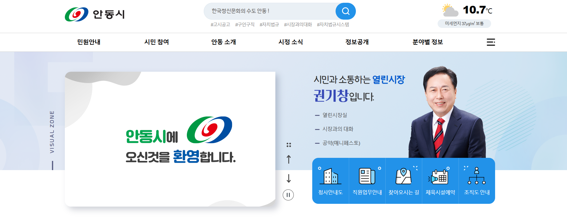 ️안동시청 홈페이지의 주요 기능