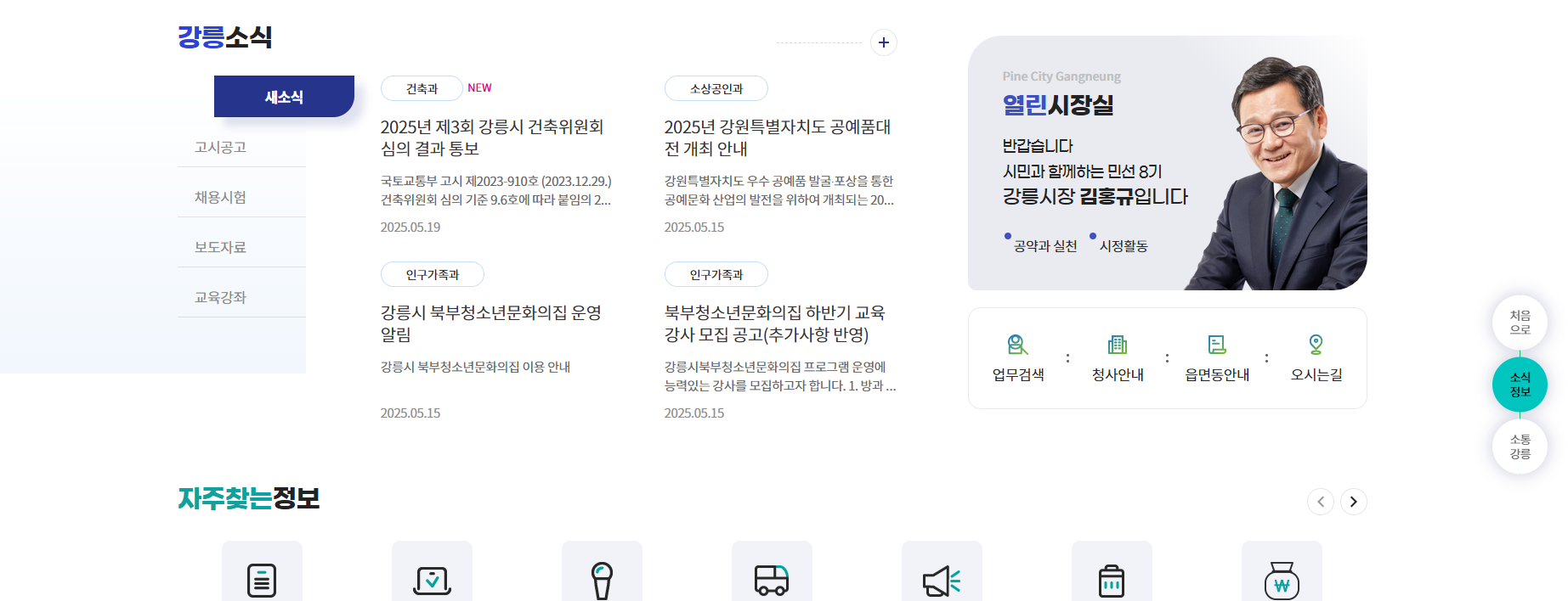 강릉시청 홈페이지는 단순한 행정 정보 제공을 넘어 시민과의 소통과 참여를 강화하는 플랫폼으로 자리매김하고 있습니다. 특히 최근에는 지역 발전과 관련된 다양한 정보와 서비스를 제공하며 주목받고 있습니다. 이번 글에서는 강릉시청 홈페이지의 주요 기능과 시민들이 관심을 가질 만한 내용을 중심으로 살펴보겠습니다.