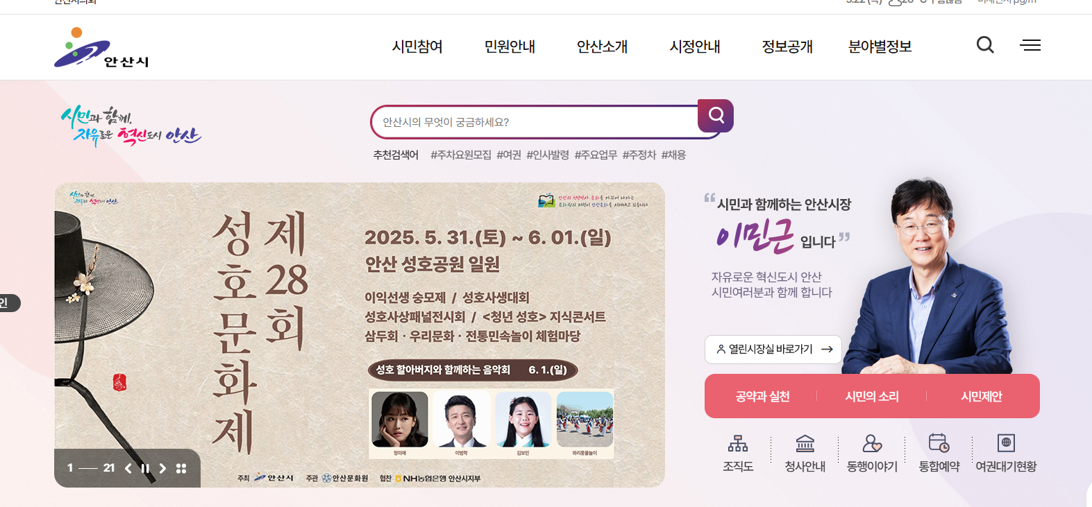 안산시청 홈페이지는 단순한 행정 정보 제공을 넘어 시민과의 소통과 참여를 강화하는 플랫폼으로 자리매김하고 있습니다. 특히 최근에는 지역 발전과 관련된 다양한 정보와 서비스를 제공하며 주목받고 있습니다. 이번 글에서는 안산시청 홈페이지의 주요 기능과 시민들이 관심을 가질 만한 내용을 중심으로 살펴보겠습니다.