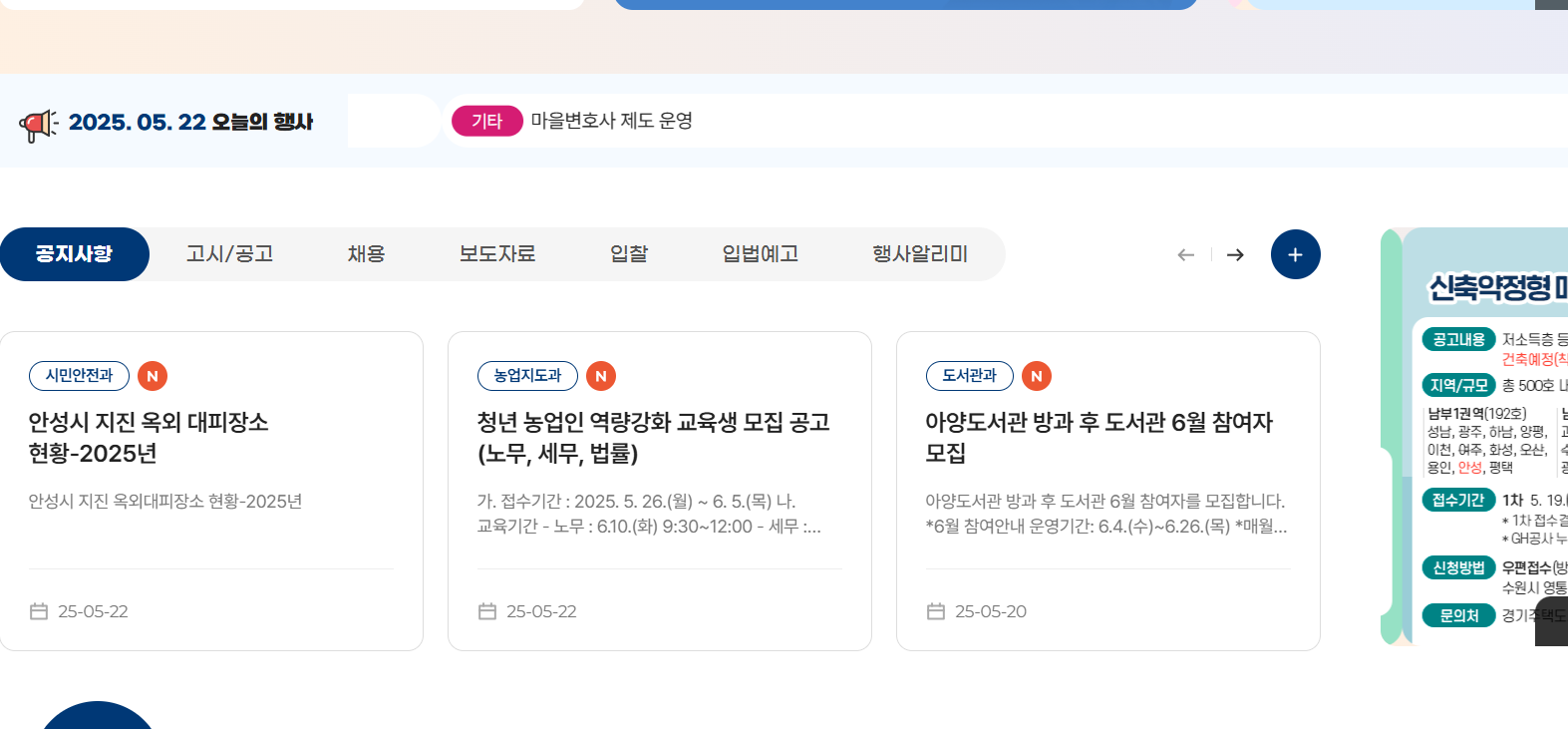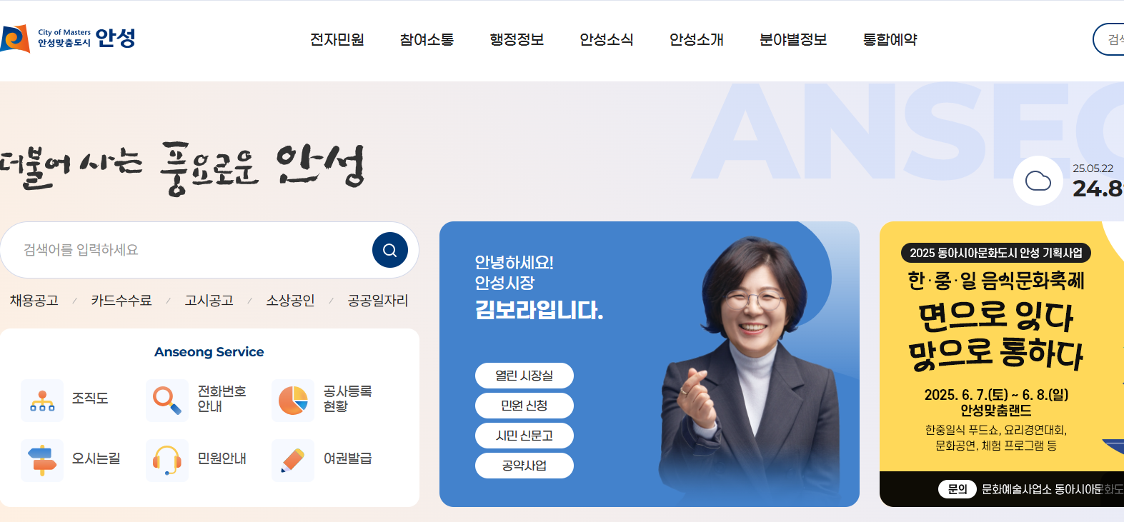 ️안성시청 홈페이지의 주요 기능