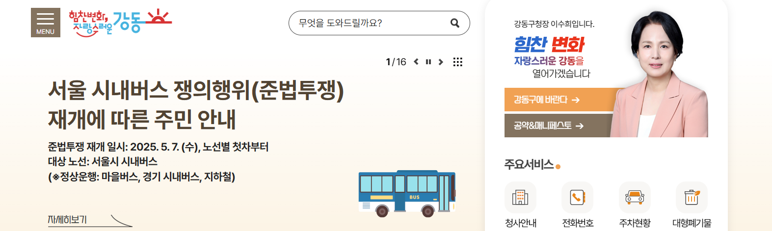 ️강동구청 홈페이지의 주요 기능